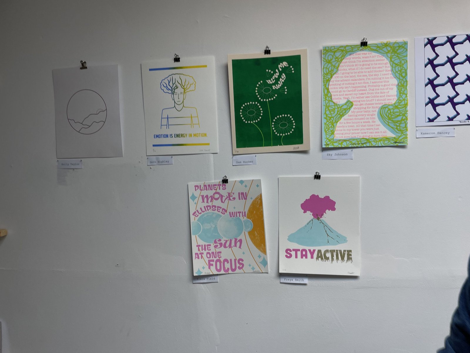 This exhibition was organised by Year 2 Art and Design, and Graphic Design students as part of their Professional Practice module and was a fantastic opportunity for them to showcase their work publicly, outlining their themes, processes, and influences to visitors. This type of experience improves the students’ communication skills, confidence, and resilience, giving them the chance to adapt to unknown situations and overcome potential obstacles to create a seamless exhibition.