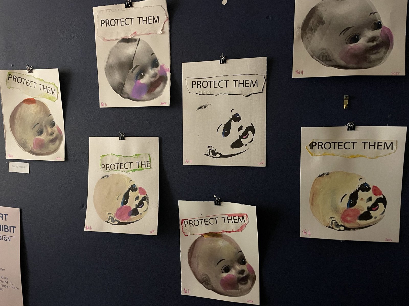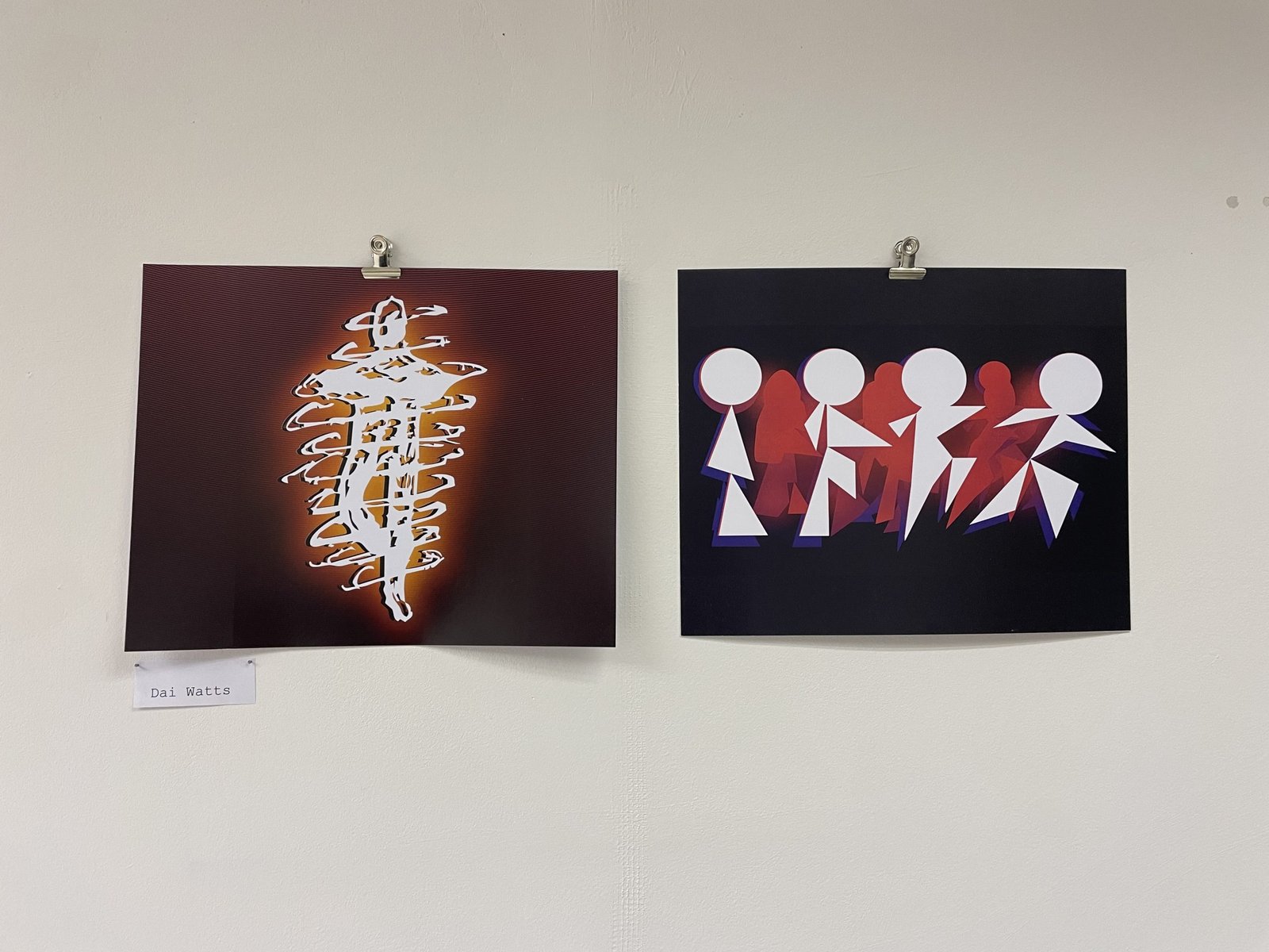 One student, Woods, created their work around communication and the motion of storytelling, exploring storytelling through a fictional world inspired by Dungeons & Dragons. Woods created their own fictional character, Nathaniel Notitia, who simulates being different in society and the need to be accepted. Nathaniel was projected onto the wall at the exhibition and reflected character journey reflects themes of difference, acceptance, and unity, emphasising communication and community in confronting societal injustices.